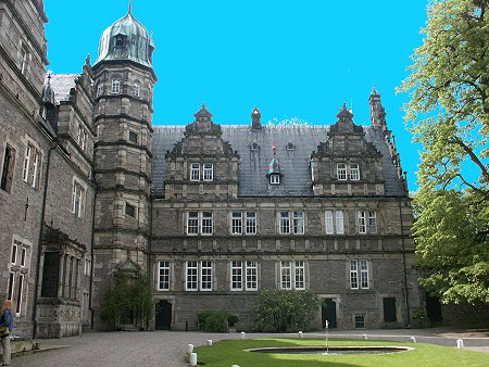 Hämelschenburg in Hämelschenburg Eine Burganlage mit bewegter Geschichte (Einnahme, Brand u.ä.) ist bereits einige Jahrhunderte vor dem Bau des heutigen Schlosses belegt, das im Jahre 1588 begonnen wurde. Durch kluge Politik (u.a. zweier Witwen) wurde das Schloss sogar vor Übernahmen und Zerstörungen gerettet. Interessant: Außenanlagen des Schlosses, der Kapelle sowie der Gartenanlagen - ganztägig geöffnet. Sehenswert: Besuch des inneren Schlosses mit seinen Gemächern und vielen Zeitzeugnissen: Gemäldegalerie der Besitzer, Wappen, Einrichtungen (teilweise aus der Erbauergszeit) und vielen Utensilien. Dieser Besuch kann nur über eine Führung unternommen werden, die jedoch absolut empfehlenswert ist, denn hier erfährt der Besucher neben geschichtlichen Daten auch einiges über politische Geflechte nebst den persönlichen Geschichten der Familie Klencke, die bis heute im Besitz dieses Prachtexemplars der Weserrenaissance ist. Inneneinrichtungen: Teilgebäude Museum Heutige Nutzung: Privatsitz und Museum